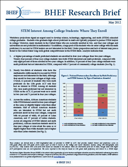 This issue brief explores the types of STEM proficient students, and the types of institutions in which they enroll.
