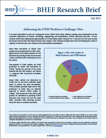 This issue brief explores the STEM workforce challenge in Ohio, where 68% of the state’s students are not interested in pursuing STEM education and careers.